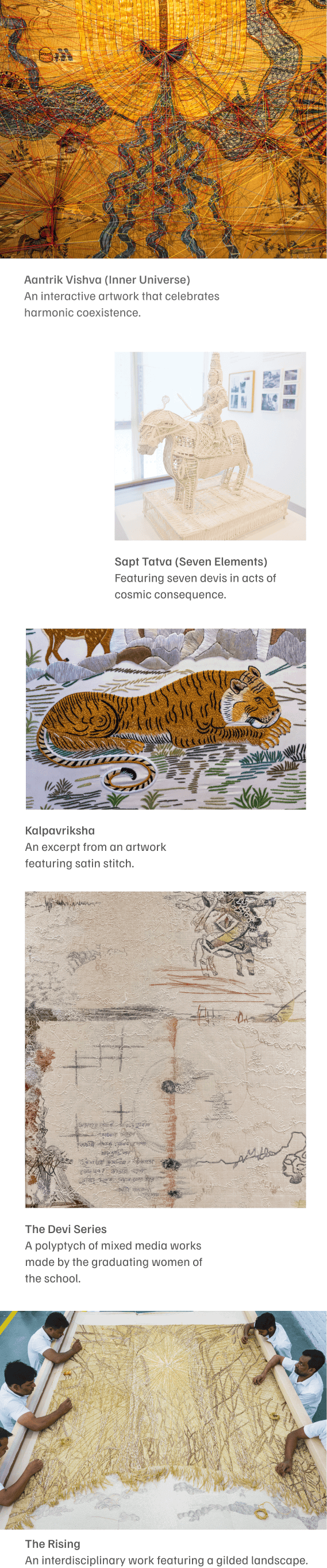 Emerging from meaningful creative dialogues, Artistic Director Karishma Swali collaborates with the highly skilled artisans of the Chanakya School of Craft and Chanakya International. Together, they make artworks that transcend the distinctions between art and craft, forging a contemporary language that unlocks the infinite potential of craft.
